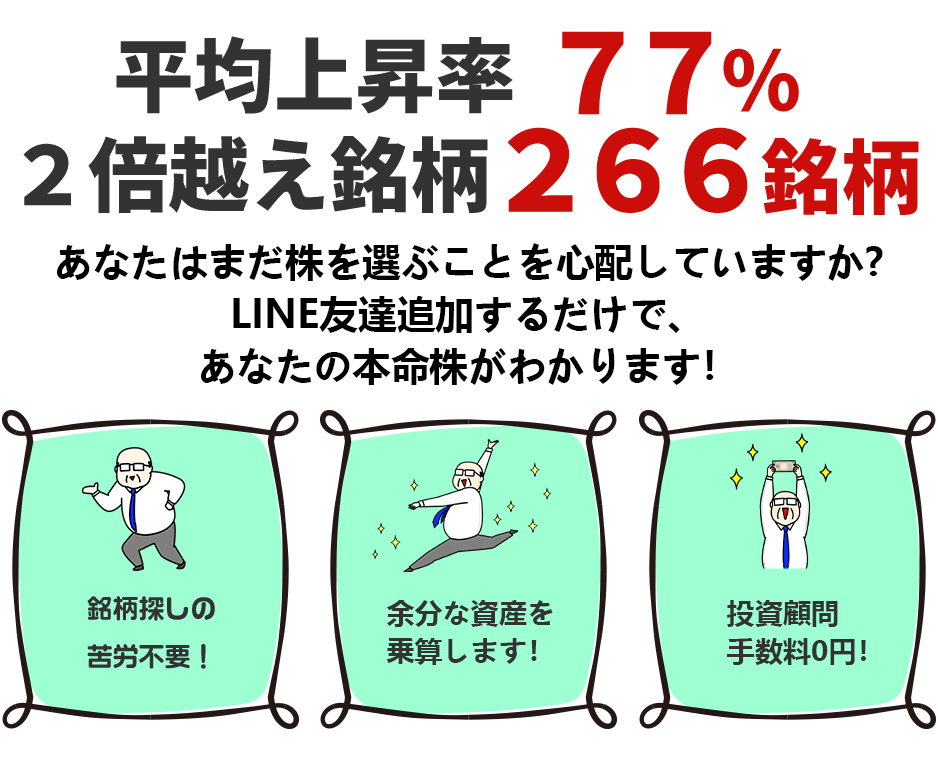 今すぐあなたのLINEに 急騰銘柄情報が 完全無料で届きます!